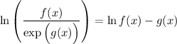 | \ln \left( \frac{f(x)}{\exp\Big( g(x) \Big)} \right) = \ln f(x) - g(x) | ![]() |